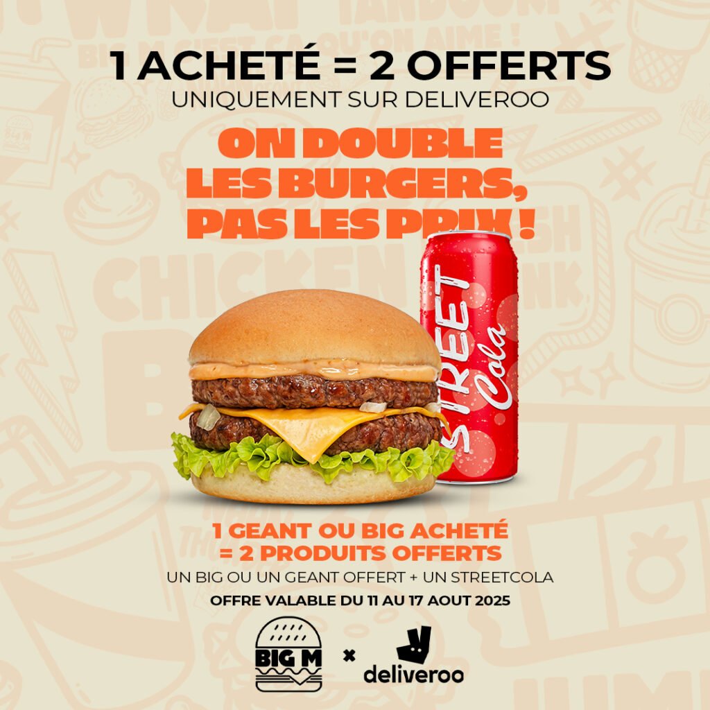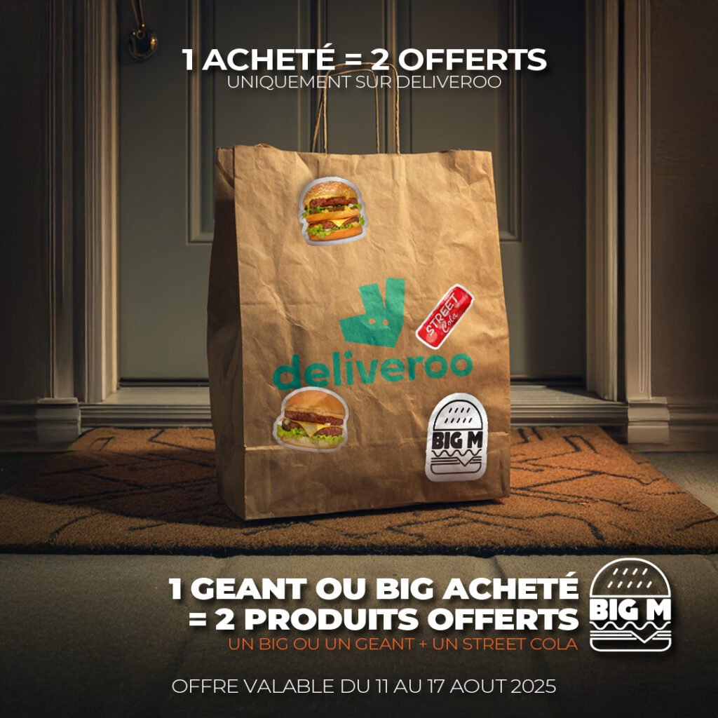 Du 11 au 17 août inclus, profitez d’une offre exceptionnelle dans tous les restaurants Big M participants, en partenariat avec Deliveroo :