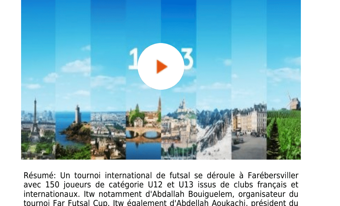 16 janvier 2024Un tournoi international de futsal se déroule à Farébersviller avec 150 joueurs de catégorie U12 et U13 issus de clubs français et internationaux. Itw notamment d’Abdallah Bouiguelem, organisateur du tournoi Far Futsal Cup.
